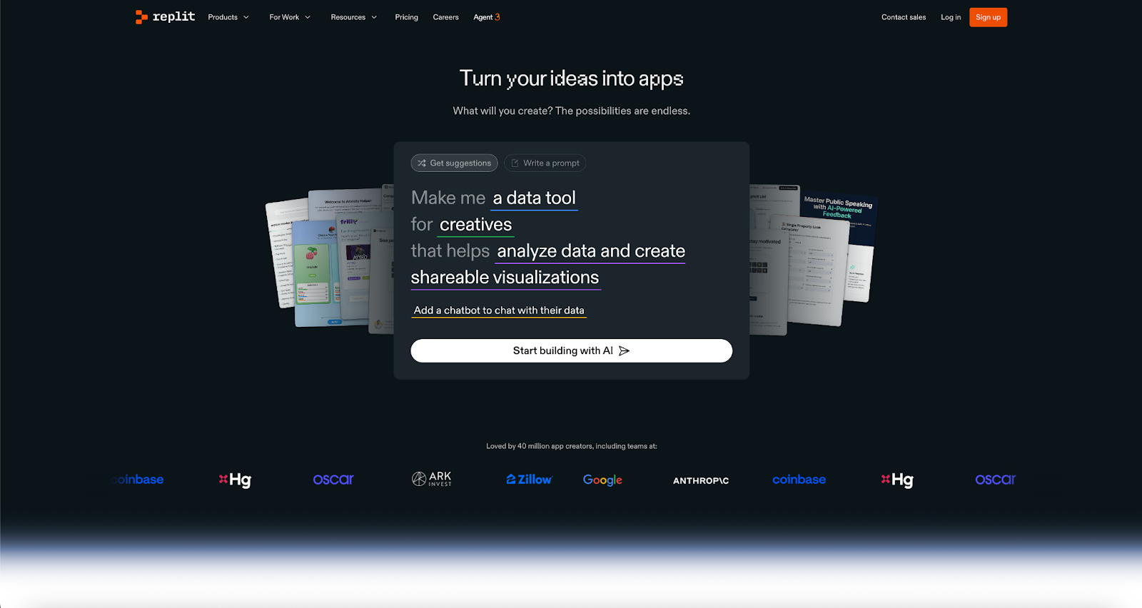 - For rapid prototyping without setup: Replit stands out with zero-configuration browser-based development and integrated deployment. Teams needing to move from concept to production quickly benefit from Agent 3's autonomous 200-minute development cycles that handle planning, coding, testing and deployment.