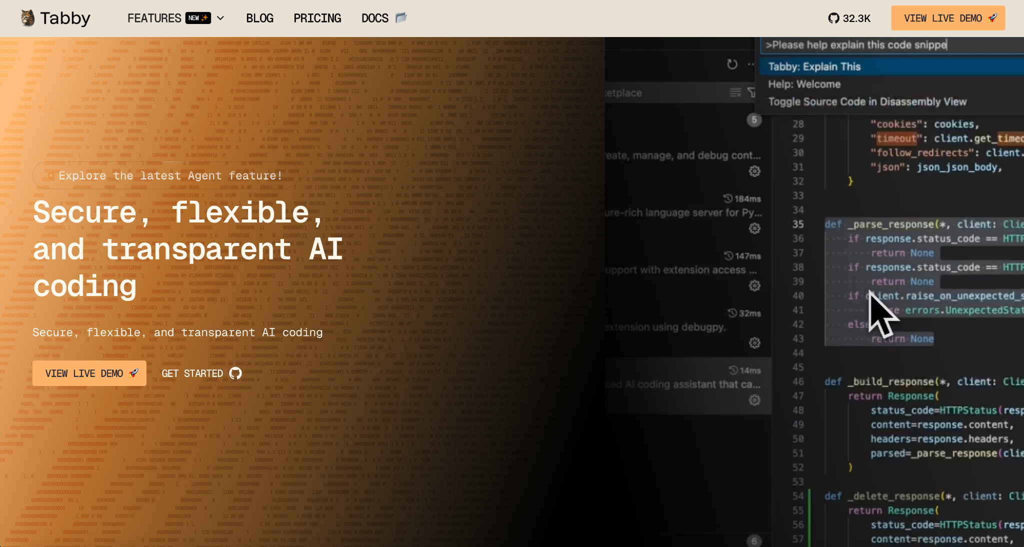 The platform offers code completion, answer engine for queries and inline chat functionality while ensuring sensitive codebases never leave your network. Tabby is completely free and open-source.
