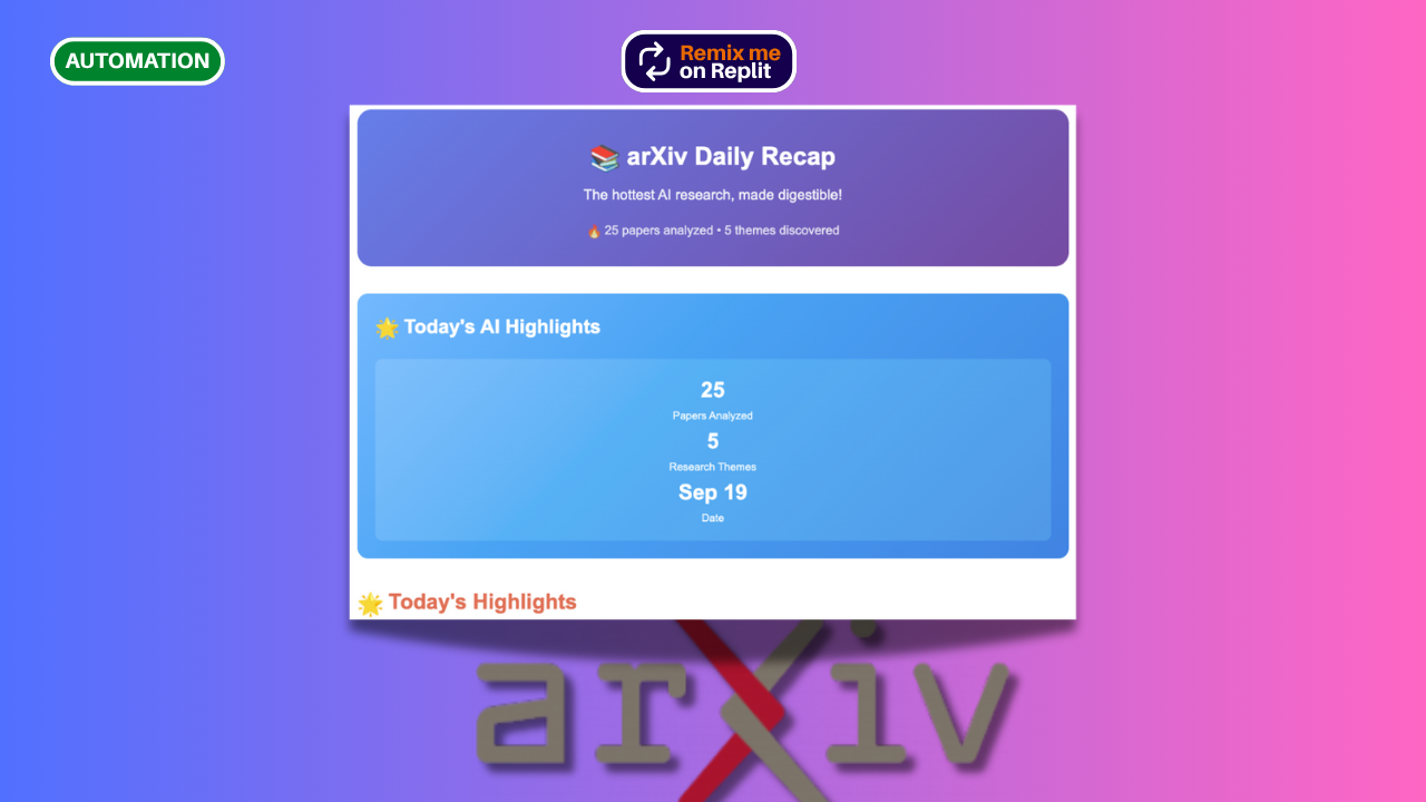 ArXiv publishes 100+ AI papers daily. Staying current is nearly impossible. This automation solves that problem by scraping the top AI papers from ArXiv each morning, summarizing each one using OpenAI, identifying key themes and insights, and delivering a personalized newsletter straight to your inbox.