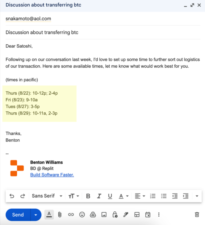Now, copy and paste this availability into your email, edit if desired, and click send.