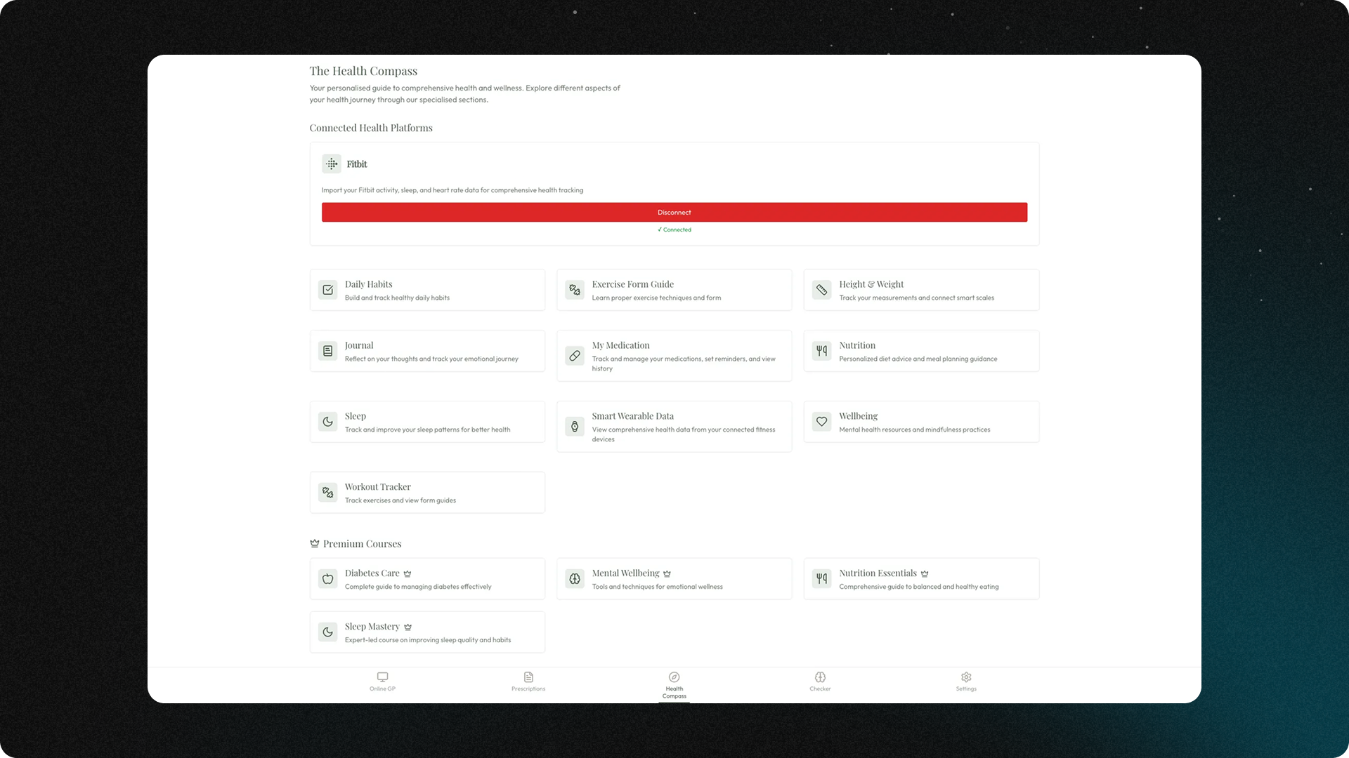 - Wearable integration: Full Fitbit connectivity for real-time health data